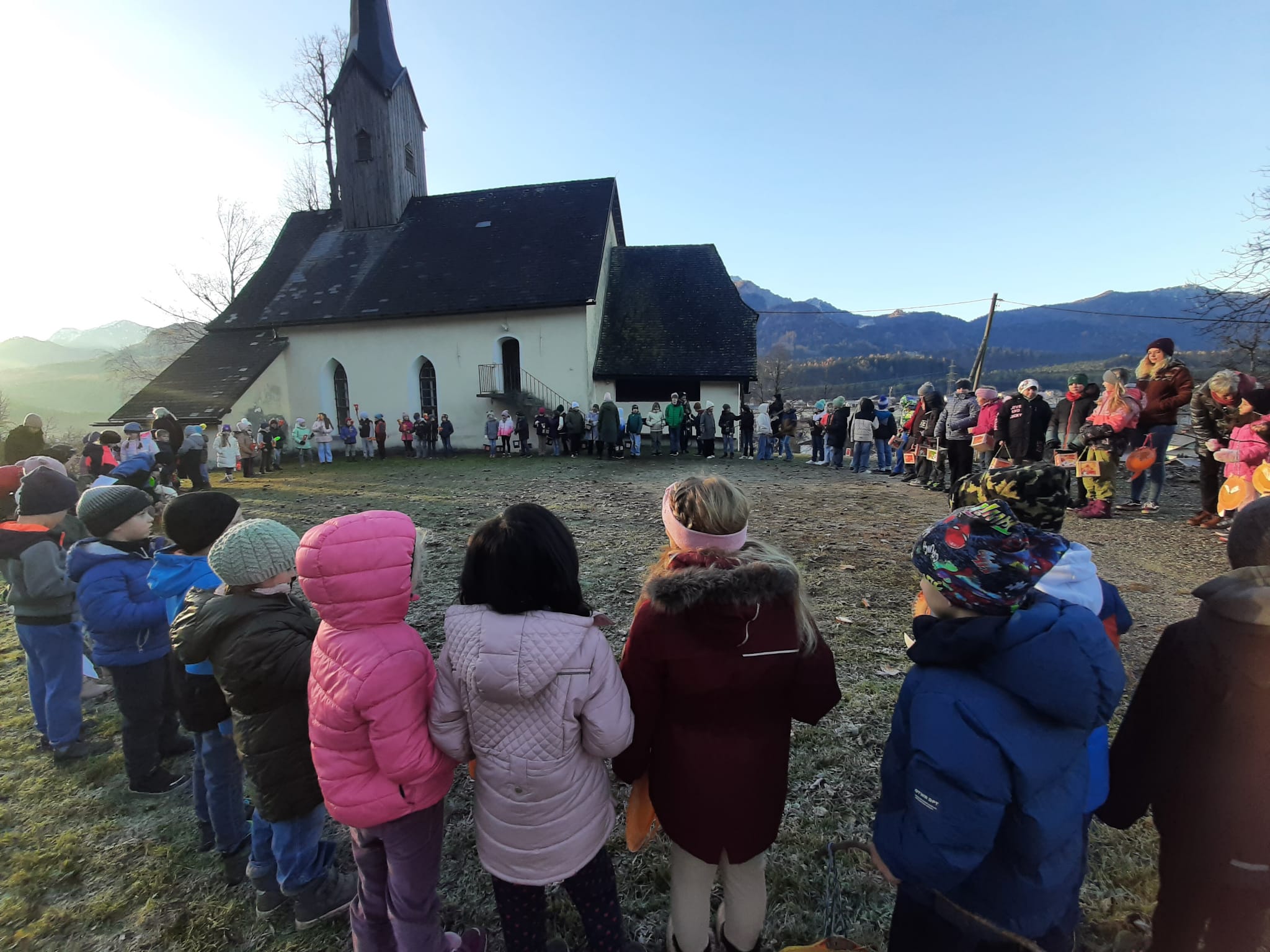 Am Dienstag, den 11.11.2025, spazierten alle Kinder unserer Schule mit ihren selbst gestalteten Laternen gemeinsam zur Kirche in Unterferlach, wo die 2.a Klasse die Geschichte des heiligen St. Martin aufführte. Außerdem sangen wir gemeinsam stimmungsvolle Laternenlieder und begannen so den Schulvormittag auf eine besondere Weise.